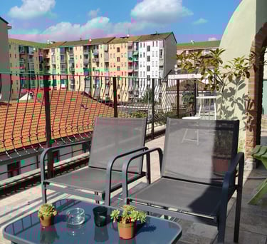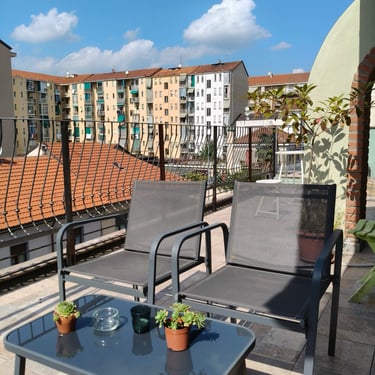 Spazioso appartamento con vista, un'ampio terrazzo ed un balcone per potersi rilassare.Situato in una zona tranquilla di Torino. Adatto per 5 persone.