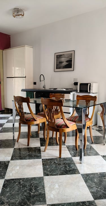 Accogliente appartamento, con cucinino e due camere da letto separate, ed ampio bagno con vasca. Adatto per 5 persone.